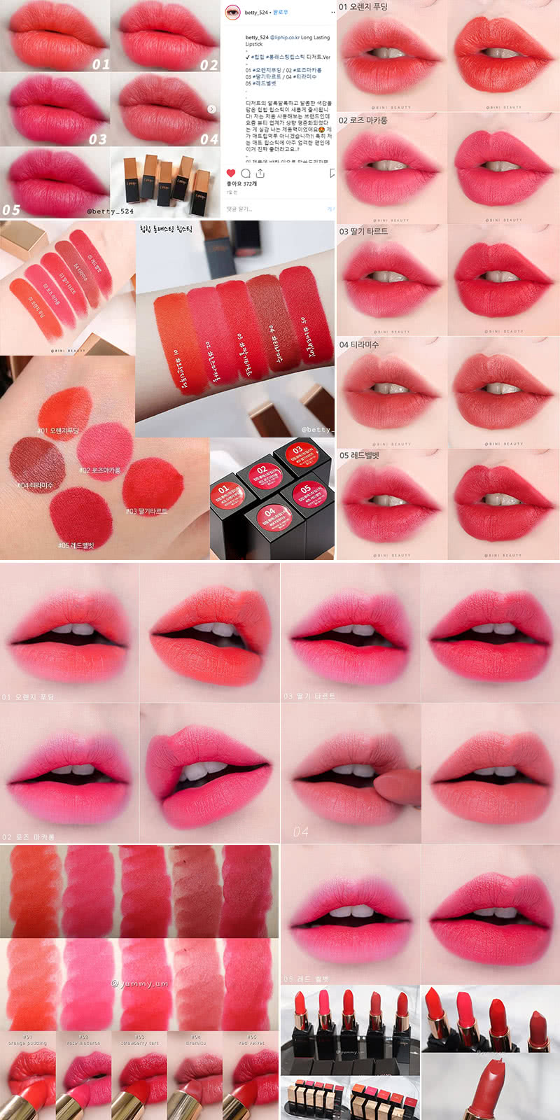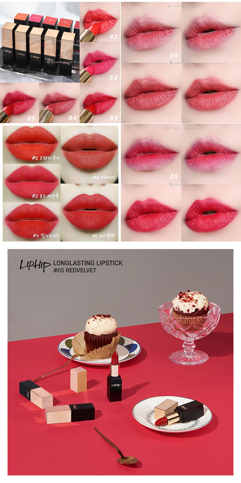 所以我個人對【韓國 LIPHIP】奢華緞面絲絨持久唇膏(5色)的評比如下